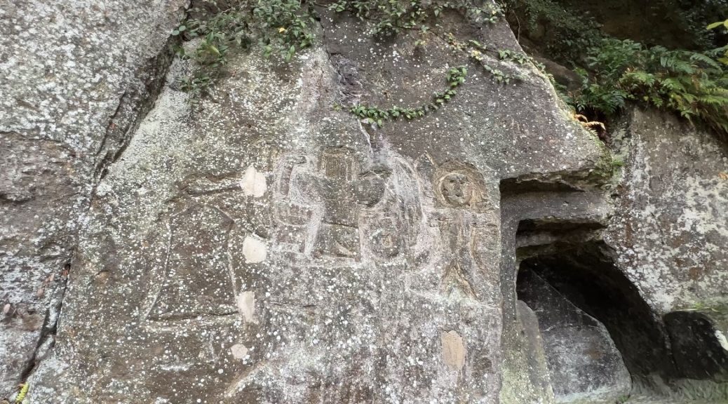 コンタクトマンのミツシュウラです 鍋田横穴群に行ってきました。 盾、弓矢、武人の線刻 1400年前の遺跡ですが、鮮明です 今回、現地…