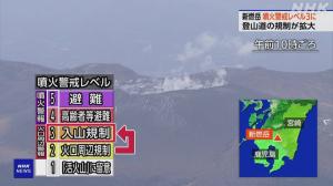 気象庁は火口周辺警報を発表し、噴火警戒レベルを「2」から「入山規制」を示す「3」に引き上げ、火口からおおむね4キロの範囲では噴火に伴う大きな噴石などに警戒するよう呼びかけています。