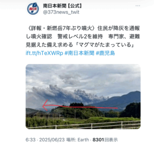 6年ぶりの降灰だと思います pic.twitter.com/v2zBnMohKG— 井上 功 @ヤリスカップ オートバックス小林店 ARTA (@isaoldr) June 22, 2025