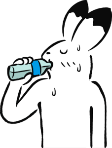 熱中症対策は、飲料水を頻繁に飲むこと。
