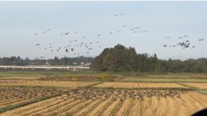 前回出雲で見かけたマガンの群れと同じくらい、沢山いました。