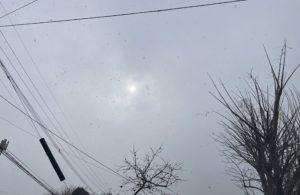 曇天の雪空ですが、外に出ると、太陽が出現しました