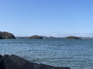 るんるん気分で、次は大村湾の真珠養殖を見ました。