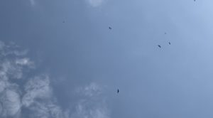 神社に行ったら、トンビの群れが上空に